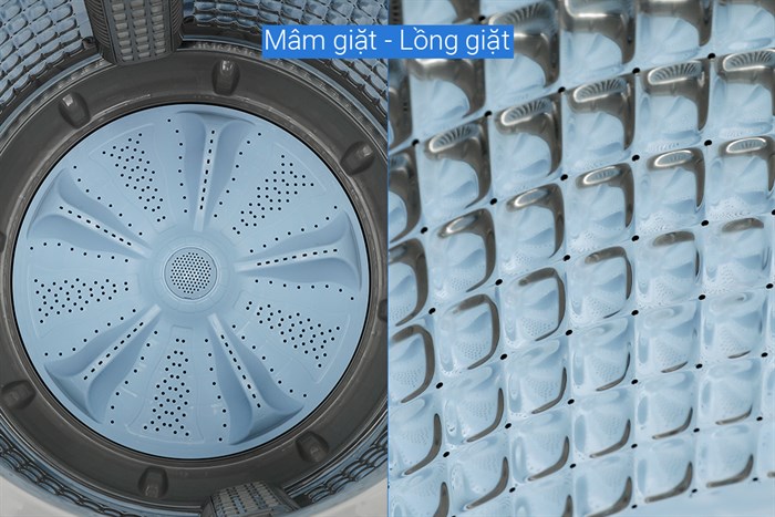 - Lồng giặt bằng thép không gỉ có độ bóng tốt và là chất liệu hạn chế tối đa được tình trạng các vi khuẩn bám trên bề mặt lồng, an toàn hơn khi sử dụng.