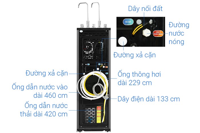 - Nhiệt độ nước thực tế: Nóng 80 - 90°C, Lạnh 12 - 16°C, Nhiệt độ nước thực tế sẽ phụ thuộc vào nhiệt độ môi trường và thể tích nước lấy ra